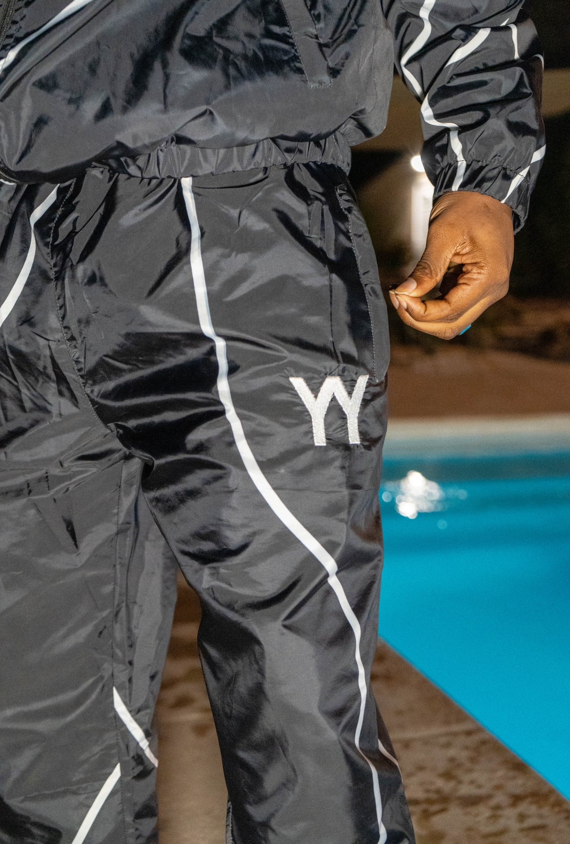 Affirme ton identité avec le survêtement noir YY, une pièce qui combine confort et esthétique streetwear.